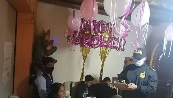 El equipo, al mando del Capitán PNP Eduardo Abazalo Jara, comisario grociopradino, llegó a la casa que se ubica a pocas cuadras del cercado del distrito. Fueron sorprendidos un grupo de hombres y mujeres que estaban compartiendo las viandas que se habían preparado para la fiesta. Estas personas tuvieron que dejar de lado los platos y cubiertos ante la presencia policial. Los efectivos procedieron con la identificación de la futura madre, el esposo y los demás familiares que se habían reunido en la casa que estaba adornada con globos de color blanco y rosado que colgaban del techo.