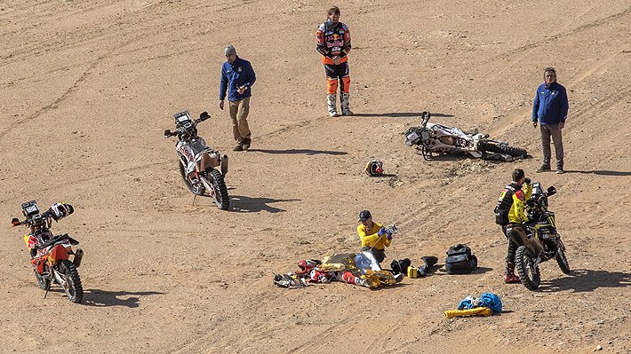 Uno de los pilotos que se detuvo a ayudar al motociclista accidentado fue el australiano Toby Price (KTM), último ganador del Dakar y tercero en la clasificación general de la actual edición del rally.