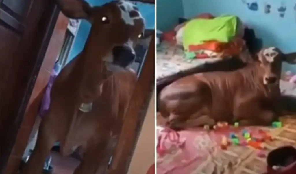 El video se volvió viral en Facebook. El dueño del animal grabó el momento en que la vaca entró a la casa de su amo y se durmió en su cama como si fuera un cachorro.