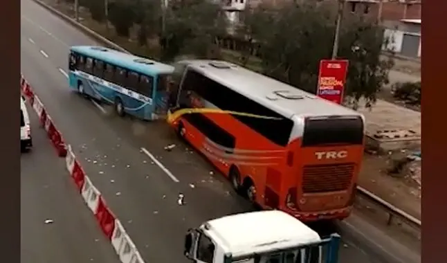 Un conductor de transporte interprovincial embistió intencionalmente a un bus público y lo arrastró varios metros en el distrito de San Juan de Miraflores(Lima). Afortunadamente no hubo heridos, pero sí daños materiales de ambas unidades.