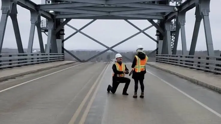 En Twitter se viralizó la romántica pedida de mano, que tiene como protagonista a un ingeniero civil y su novia, con quien construyó el puente Memorial de Portsmouth, Estados Unidos.