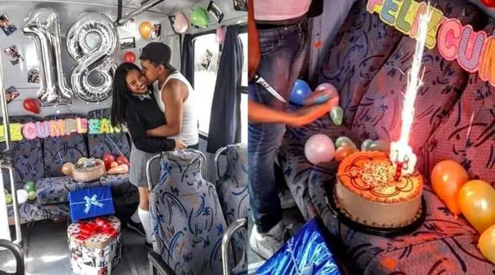 Joven chofer cumple 18 años y su novia lo sorprende con una fiesta en un bus