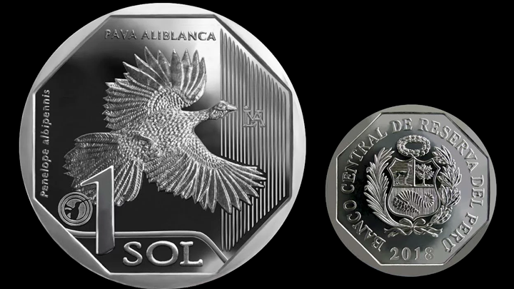 La moneda de S/1 emitida por el Banco Central de Reserva del Perú alusiva a la Pava Aliblanca fue elegida como la “Mejor Moneda de Curso Legal del año” 2018 en la VI edición de los Premios Nexofil & Nexonum, distinción que reconoce los mejores sellos y monedas del mundo.
