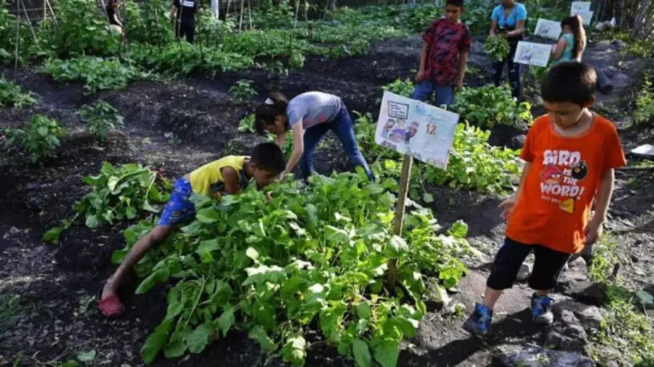 «Es una iniciativa de nuestra comunidad El Chaparral con el objetivo de involucrar a los niños y a los jóvenes para que puedan cultivar sus alimentos», dice a AFP Victorina Alvarenga, de 32 años, quien acompaña a su hija Sheyla, de nueve años.
