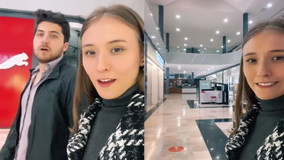 Minutos más tarde, según contó la pareja en otro video, encontraron a un guardia de seguridad, quien los dejó salir de la plaza.