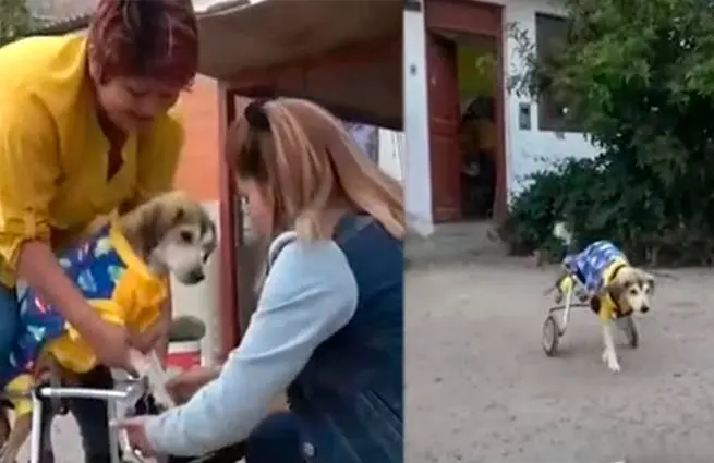 Perrito que fue víctima de la delincuencia, recibe una nueva silla de ruedas (Video)