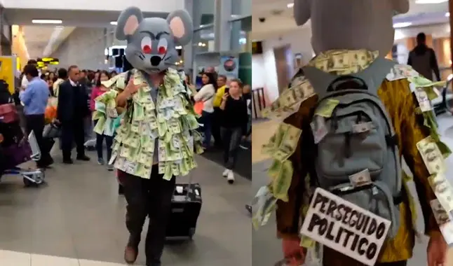 Peruano se viste como ‘rata’ y acude al aeropuerto para abandonar el país (VIDEO)