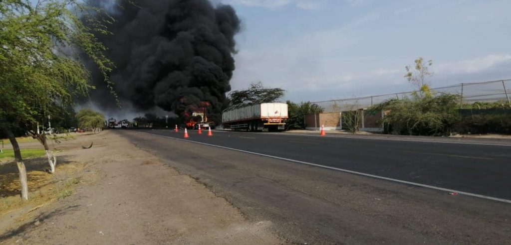 Alerta por camión de petróleo que se incendia en vía hacia Paracas