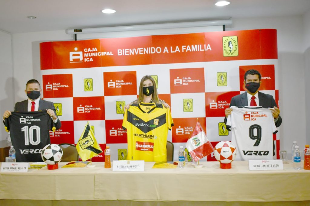 La presidenta de la Academia Deportiva Cantolao; Sra. Gisella Madriotti Nightingale, encabezó la ceremonia protocolar de presentación de Caja Ica como auspiciador oficial del club de fútbol durante toda la temporada 2021, quienes exhibirán su marca en las camisetas oficiales de las categorías masculino y femenino.