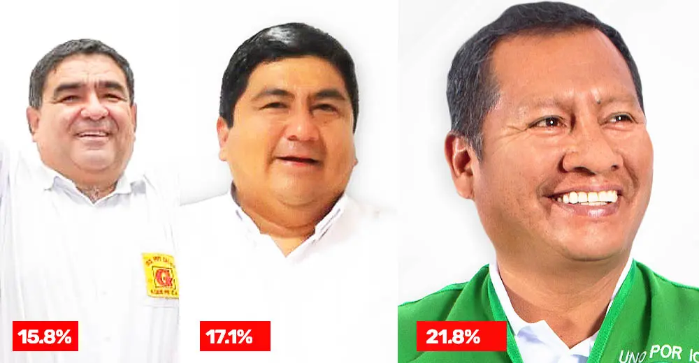 En el tercer lugar aparece Pepe Gálvez de Obras por la Modernidad con 15.8%, en cuarto lugar le sigue Fredy Condorí de Alianza Para el Progreso (APP) con 14.9%, en sexto lugar Manolo Praeli de Podemos con 13.3%.