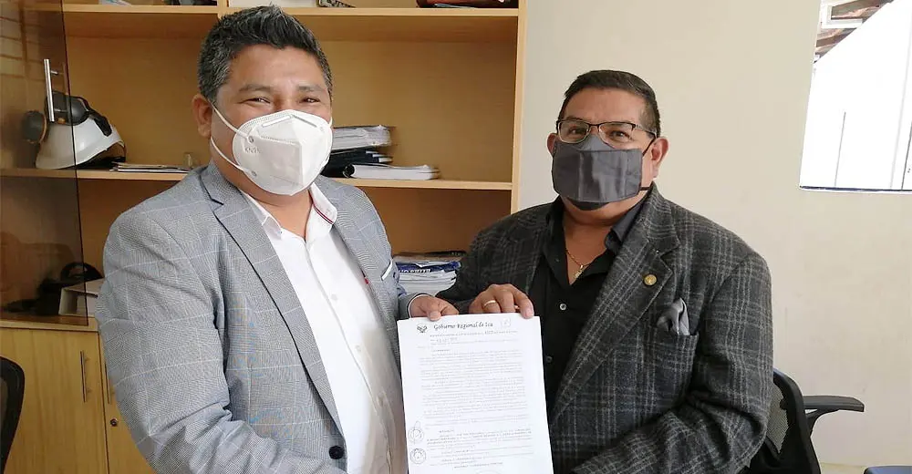 El gerente regional del GORE, Álvaro Huamaní y el Secretario de este organismo Alejandro Paucar, entregaron esta mañana la resolución de designación al flamante Jefe del PETACC, quien asume el compromiso de trabajar en equipo con el fin de alcanzar las metas y objetivos institucionales.