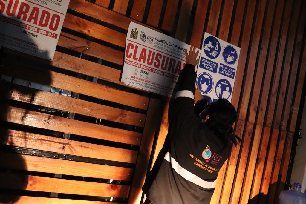 Para frenar la tasa de contagios de COVID 19 y la reducción de la informalidad, la Municipalidad Provincial de Ica, Ministerio Público, Sub Prefectura Provincial y Policía Nacional del Perú, ejecutó un operativo inopinado nocturno, concluyendo en la clausura temporal del establecimiento Macarena”, por contravenir a normas sanitarias y ordenanzas municipales, vigentes en nuestra jurisdicción.
