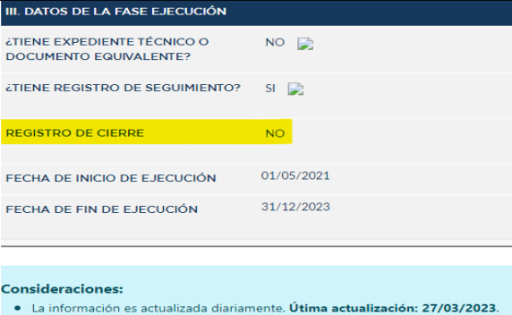 Asimismo, la Contraloría identificó que la fase de ejecución no se encuentra en el Sistema del Banco de Inversiones, a pesar de que el proyecto cuenta con la liquidación aprobada. Es por ello que, advierten que el Municipio Distrital de La Tinguiña no habría realizado el cierre en el plazo determinado. El informe fue enviado el 31 de marzo del 2023 al actual alcalde Juan Vargas Valle, para que tome las medidas preventivas y correctivas en el lapso de cinco días.