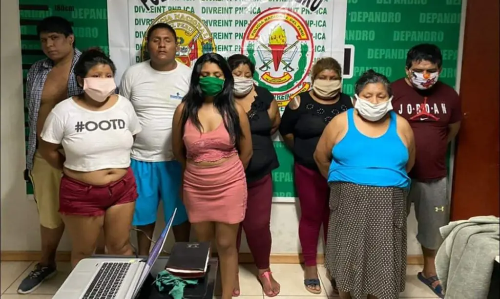 Acciones de inteligencia del Frente Policial de Ica, permitió la captura de un clan familiar dedicado a la microcomercialización de drogas integradas por padres e hijos capturados en flagrancia del delito. Este clan estaba integrado por el cabecilla alías “Goyo” en compañía de sus hijos “Juan” y “Elizabeth ” del Clan “Los Cujes de la Esperanza”. Estas personas venían vendiendo droga en el frontis de una casa ubicado en el Pueblo Joven La Esperanza en la ciudad de Ica. Según fuentes policiales los intervenidos eran encargados de abastecer y administrar la venta y comercialización de droga en el cercado de Ica. Fueron identificados como Nelly Castro Tenorio (59), Jessica Elizabeth Cujes Castro (32), Juan Alfredo Muñante Escate (37), Dayana Iveth Bellido Cujes (19), Esmeralda Yolanda Cujes Castro (19), Juan Carlos Cujes Castro (23), y Jean Franco Mayhua Sajines (21). Policias allanaron el domicilio logrando detener a esta banda delictiva encontrando en los registros personales y domiciliario (298) BOLSITAS DE PBC, (10) ENVOLTORIOS DE MARIHUANA E INCAUTACIÓN DE (200.30) SOLES, (05) CELULARES Y (03) MEMORIAS USB. Al ser descubiertos, pusieron tenaz resistencia al momento de la intervención policial.