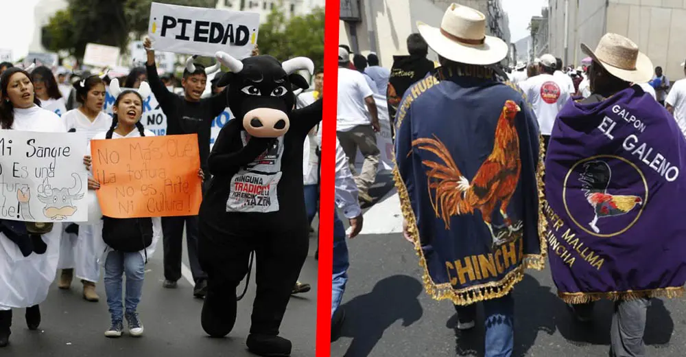 Este domingo 09 de febrero, dos manifestaciones se encontrarán en el distrito de Salas Guadalupe en Ica. Por un lado los criadores de gallos de pelea a navaja y por otro; los animalistas que se manifiestan contra la pelea de gallos y la corrida de toros.