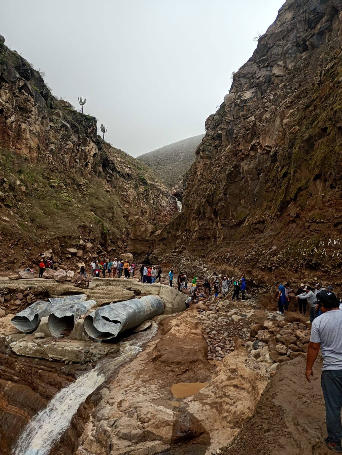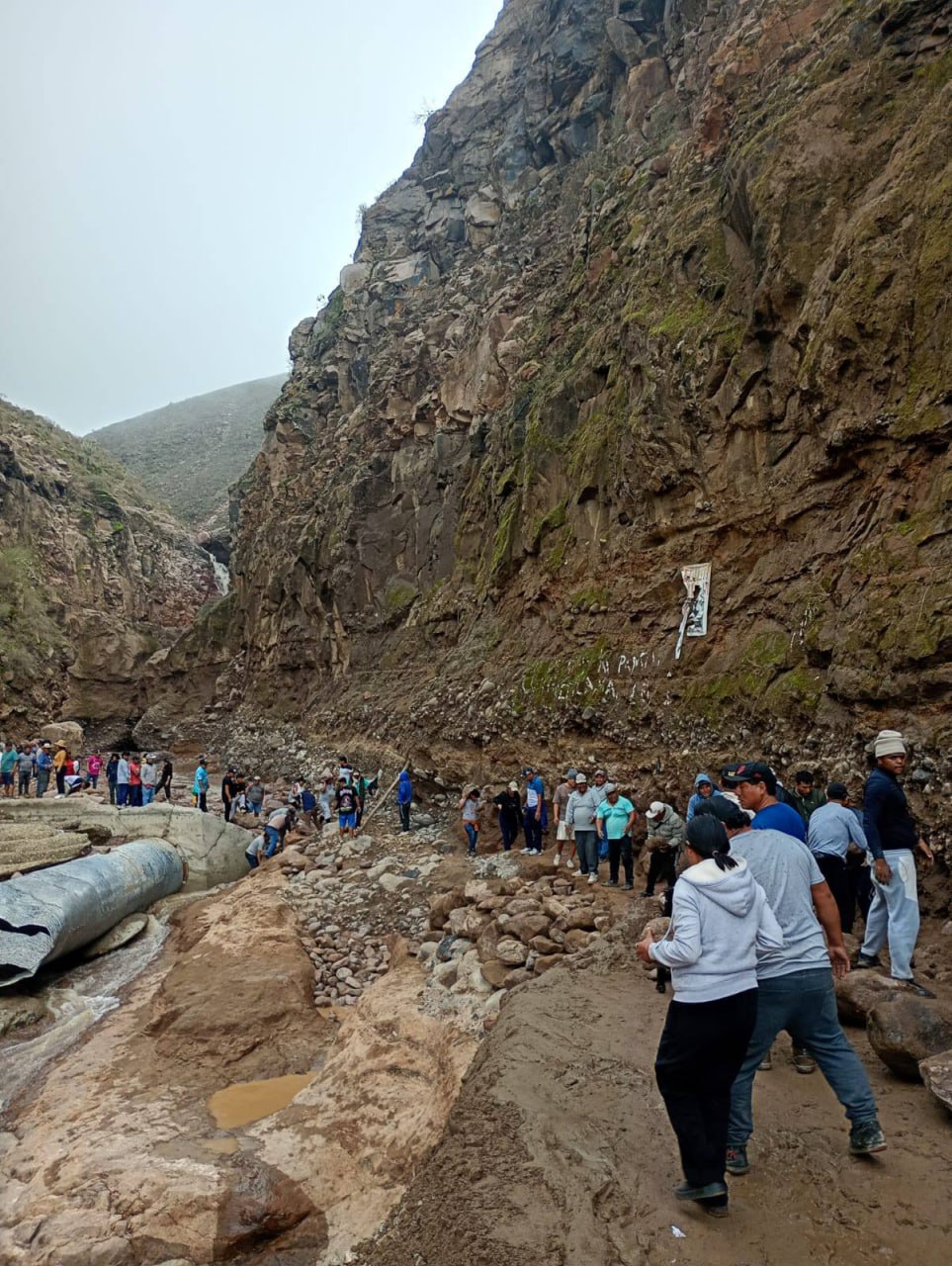 En el sector Infiernillo, hombres y mujeres trabajan con palas y picos para retirar lodo, piedras y escombros que cubren la carretera. La labor busca restablecer el tránsito interprovincial luego de varios días de aislamiento que afectaron el transporte, el abastecimiento y el acceso a servicios básicos.