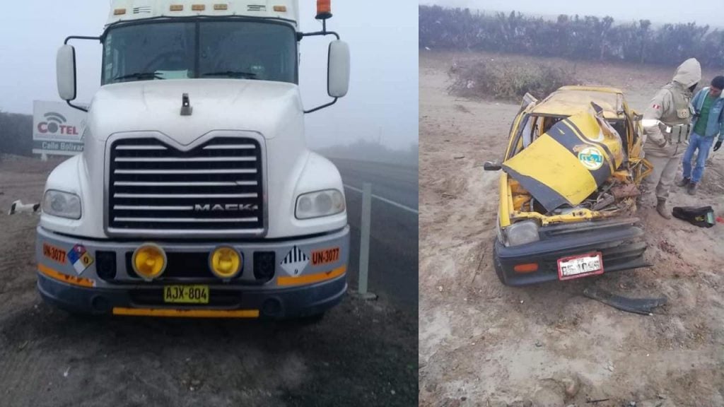 Tres personas heridas, dejó el choque frontal entre un tráiler de placa AJX-804 y el auto tico de placa BF-1098 en el kilómetro 288 de la Carretera Panamericana Sur, altura del Fundo Fraile del Distrito de Salas Guadalupe en Ica. El accidente de tránsito se registró esta mañana a las 6:20 hrs aproximadamente. El Jefe de Serenazgo de la Municipalidad de Salas Guadalupe, Wilfredo Mávila Machado, informo que el chofer del tico identificados como Jesús Quispe Espino, presenta rotura de cabeza. Asimismo sus compañeros a bordo, Kevin Lovera Muñóz y Robinson Lovera Muñoz, presentan diversos golpes en el cuerpo. Los heridos fueron trasladados inmediatamente al Hospital Regional de Ica.