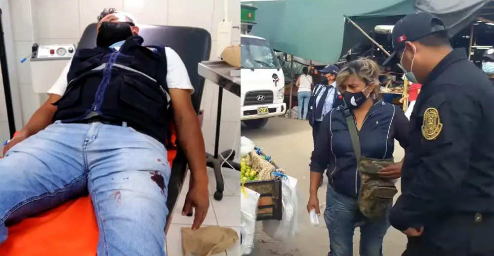 Una brutal agresión sufrió un policía municipal de la Municipalidad Provincial de Nasca por parte de una vendedora informal quien le rompió la cabeza con un fierro porque se negó a salir del lugar que ocupaba en la vía pública.