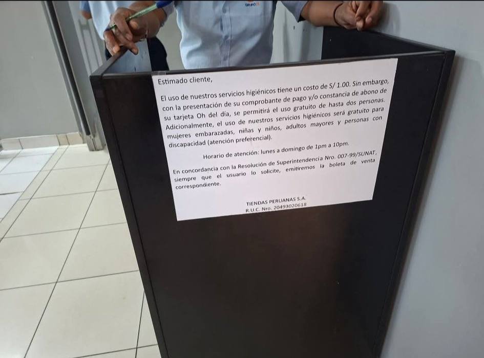 La tienda Oechsle ubicada en la avenida San Martín, en pleno centro de Ica, implementó una nueva medida que ha generado comentarios entre sus visitantes: cobrará S/1 por el uso de sus servicios higiénicos a quienes ingresen al local sin realizar compras.