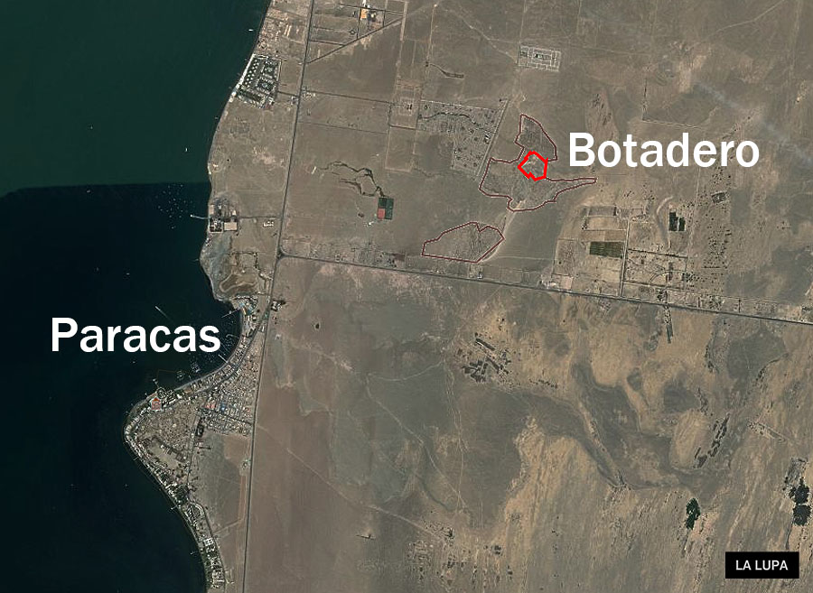 El botadero de residuos sólidos de la Municipalidad de Paracas está ubicado en km 9.5 de la carretera Santana Chiri.