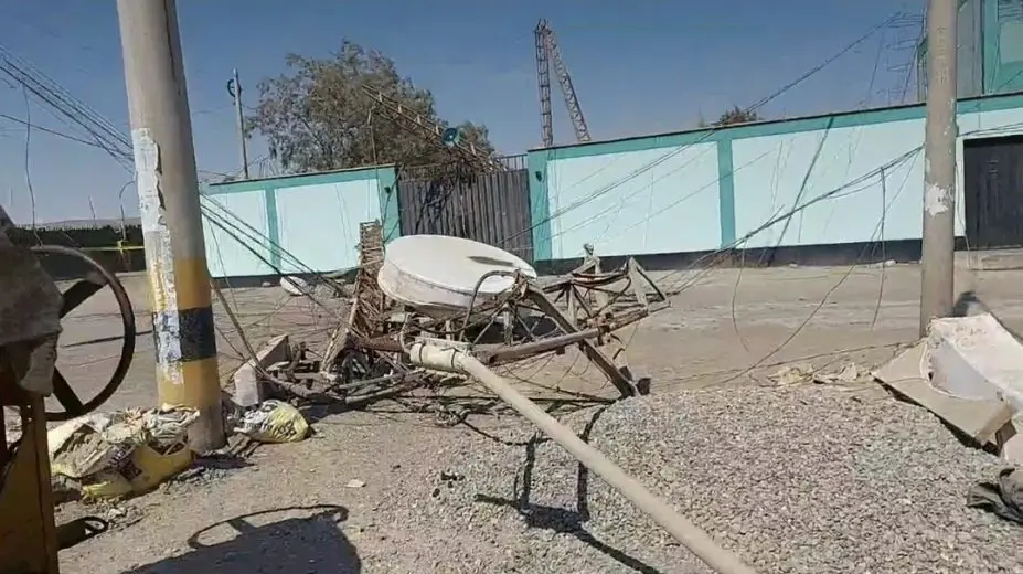 Pisco: Antena de telefonía se desploma afuera de una comisaría