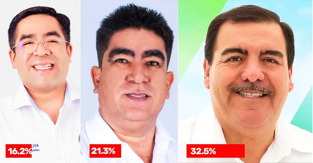 En segundo lugar aparece el exalcalde de Pisco como candidato de Alianza Para el Progreso, Juan Mendoza Uribe con el 21.3% y más atrás en tercer lugar el excongresista Alberto Oliva de Somos Perú. Hay una distancia abismal entre estos dos y Rocky quien pasa el 30%.