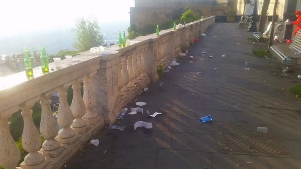 En Nápoles, al sur de Italia, restos de cigarrillo y botellas de cerveza copaban algunas plazas y calles. También se registró un asesinato en la Piazza Bellini a plena luz del día.