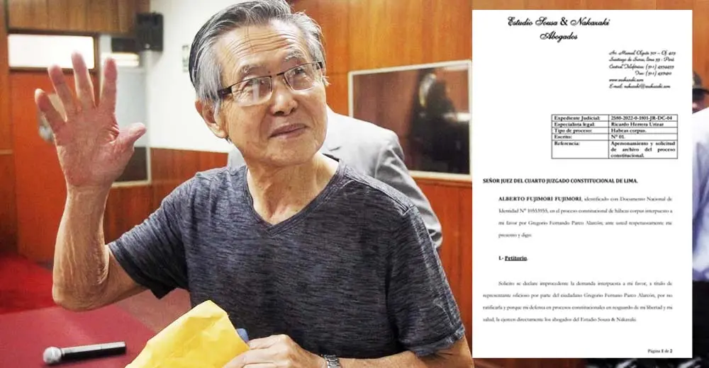 De acuerdo con el documento que hace mención el abogado Parco, dice lo siguiente: «SEÑOR JUEZ… Solicito se declare improcedente la demanda interpuesta a mi favor, a título de representante oficioso por parte del ciudadano Gregorio Fernano Parco Alarcón, por no ratificarla y porque mi defensa en procesos constitucionales en resguardo de mi libertad y mi salud, la ejercen directamente los abogados del Estudio Sousa & Nakazaki».