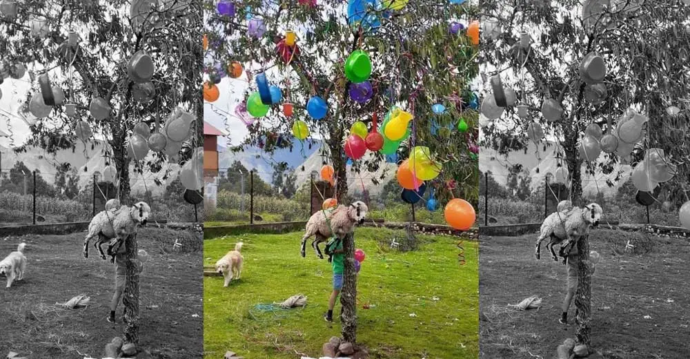 Se ha mostrado indignados usuarios en las redes sociales luego que se hizo viral la fotografía de un carnero vivo colgado a un árbol como parte de los premios de una yunza.