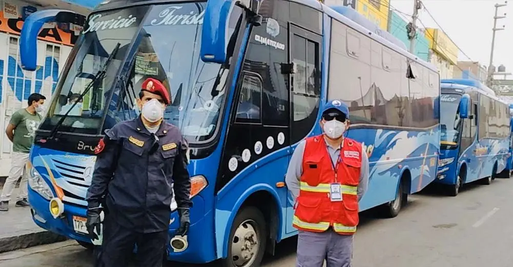 La Superintendencia de Transporte Terrestre de Personas, Carga y Mercancías (Sutran), adscrita al Ministerio de Transportes y Comunicaciones, en trabajo conjunto con el Instituto Nacional de Defensa Civil (Indeci), el Ministerio de Salud (Minsa) y la Policía Nacional, aplicó sus protocolos para garantizar la seguridad y habilitación de los tres buses, así como los requisitos de sanidad del viaje de 53 personas a Huaraz.