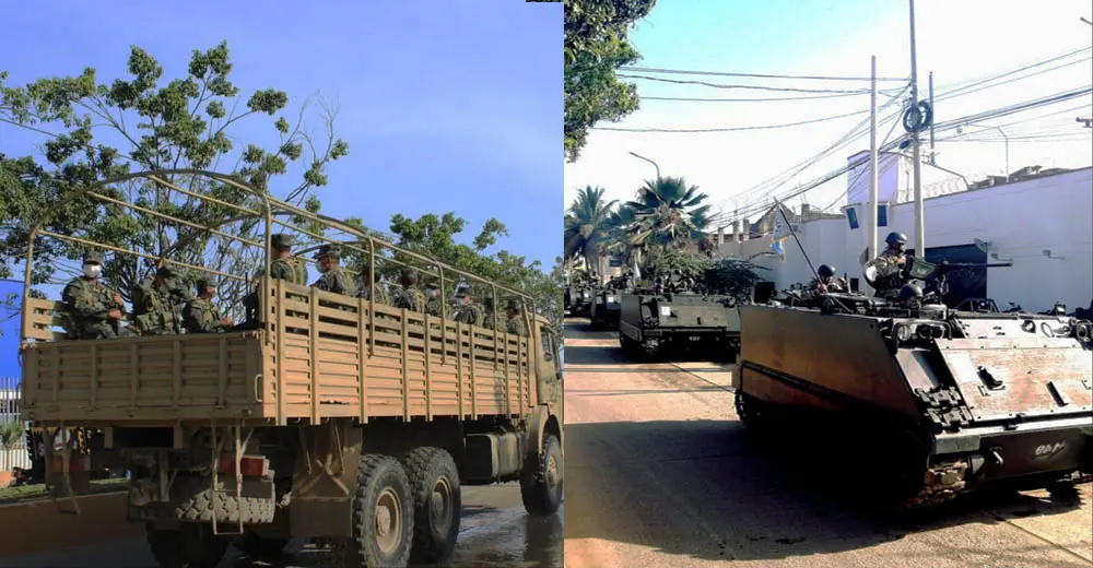 En cumplimiento a las disposiciones del Gobierno Central, la 1a Brigada de Infantería y la 9na Brigada Blindada han desplegado a personal y medios (vehículos portatropas y blindados) para el cierre de la línea frontera para frenar el ingreso de personas extranjeras indocumentadas por puntos motorizados a lo largo de la región Tumbes, así como para contener la propagación de la COVID-19.
