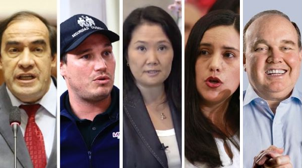 Les siguen Verónika Mendoza (Juntos por el Perú) con 5,4%, Rafael López Aliaga (Renovación Popular) con 5,2%, Hernando de Soto (Avanza País) con 4,5%, Pedro Castillo (Perú Libre) con 4,3%, César Acuña (Alianza para el Progreso) con 4,0% y Daniel Urresti (Podemos Perú) con 3,8%.