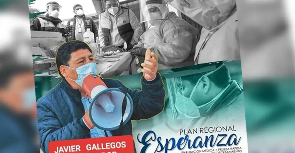 Asegura que al menos 11 posts difundidos con diferentes fechas se relacionan a resaltar la imagen y nombre de Gallegos con el Plan Esperanza, un programa iniciado por el GORE que tiene como objetivo frenar el COVID-19 a través de atención, sensibilización y prevención.