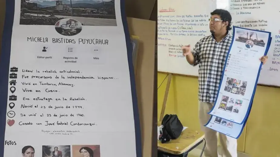 Un profesor del curso de Historia se ha ganado los aplausos del público y de sus alumnos, luego que mandara a los escolares a diseñar varios perfile de biografía tipo Faebook con los héroes peruanos.