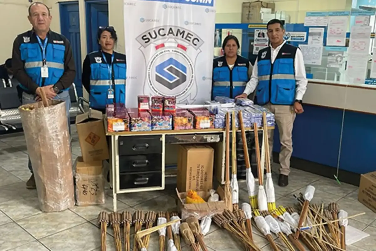 Inspectores de la Superintendencia Nacional de Control de Servicios de Seguridad, Armas, Municiones y Explosivos de Uso Civil (Sucamec) decomisaron 250 kilogramos de productos pirotécnicos e insumos químicos. El material estaba almacenado sin autorización en una vivienda de la provincia de Jauja, departamento de Junín, el 14 de marzo.