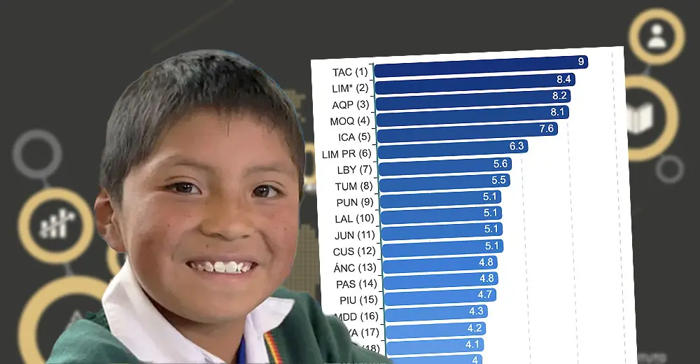 El estudio Incore del Instituto Peruano de Economía califica con 9 puntos a Tacna en el rubro de Educación. De esta manera esta región ratifica su posición de liderazgo en este índice.