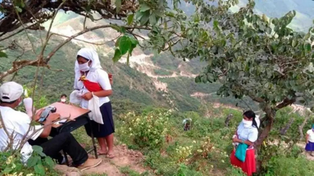 Un agente del Banco de la Nación fue instalado en un cerro, debajo de un árbol y en una mesa, por gestión del alcalde del distrito de Salas, región Lambayeque. A más de 3000 metros de altura, los pobladores de seis centro poblados formaron largas colas para cobrar los bonos del Estado, en el marco de la COVID-19.