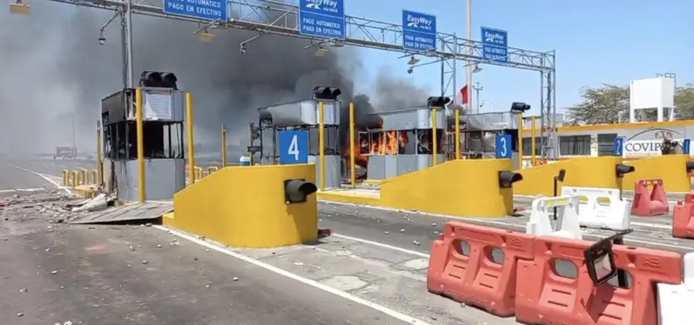 Manifestantes del paro de transportistas incendian el peaje de Villacurí en Ica (VIDEO)