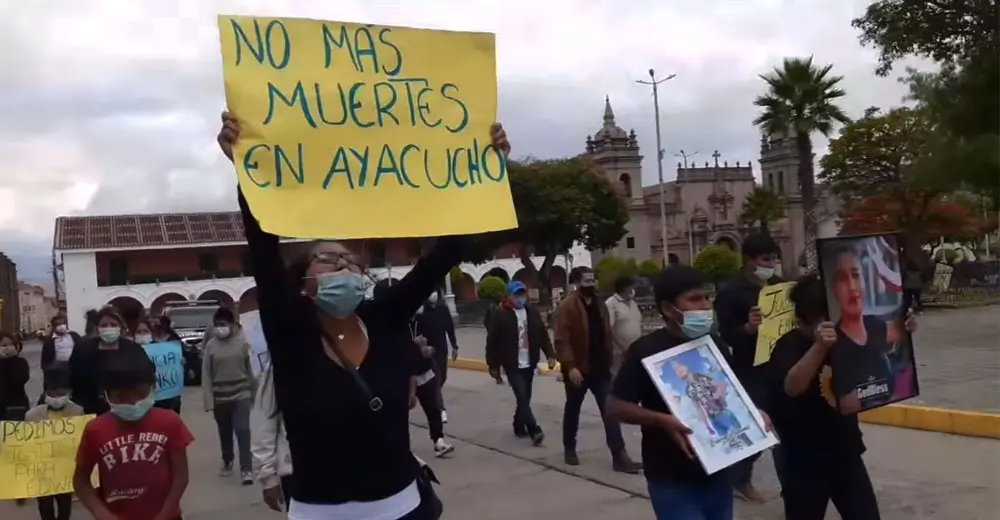 Mediante la publicación de un video en redes sociales se observa que los familiares de la víctima pasearon por la plaza de Huamanga con pancartas y fotografías en mano.