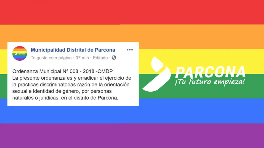 La Municipalidad Distrital de Parcona en Ica, ha emitido una ordenanza municipal contra la discriminación a las personas con distinta orientación sexual de las personas de ese distrito. A propósito del la Marcha del Orgullo.