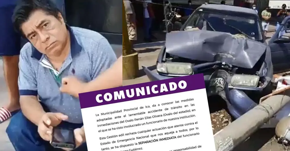 La Municipalidad Provincial de Ica ha emitido un comunicado sobre el suceso de tránsito ocurrido el último sábado 11 de abril donde un funcionario en aparente de estado de ebriedad derribó un poste de luz y atropelló a una joven en el óvalo.