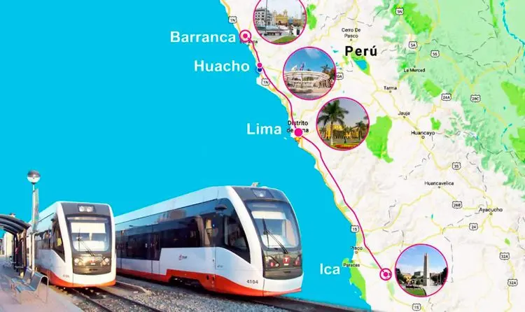El tren de cercanías tendrá una longitud de 323.7 km y pasará por los distritos de Barranca, Lima, Lurín, Chilca, Mala, Asia, Cañete, Chincha Alta y Pisco hasta llegar a Ica. Además, se conectará con los metros de Lima y el Callao, así como con el ferrocarril del Centro. El vehículo se moverá a una velocidad de 200 km/h, permitiendo completar el trayecto en tan solo tres horas. Se estima que la población beneficiada será cercana al millón. No solo eso, sino que también se podrán transportar mercancías. Se calcula que la fecha de aprobación del proyecto será a finales del 2020, con tres empresas nacionales y China Railway a cargo. Así, se podrían empezar a ver avances en la obra a comienzos del 2021. Según el Ministerio de Transportes y Comunicaciones, la inversión será de US$ 3,263.9 millones.