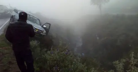 Chofer intenta salir de camioneta y muere cayendo a un abismo de 20m