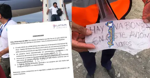 Perú • 24 Ene, 2020Papel escrito «hay una bomba en este avión» causó pánico en avión y aterrizó en Pisco