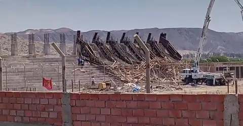 Ica • 27 Mar, 2023Ica: Tribuna del estadio de Santiago se derrumba en plena construcción y deja un herido