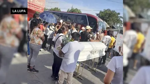 Ica: Llevan féretro de mujer que murió atropellada por bus al local de la empresa Perú Bus